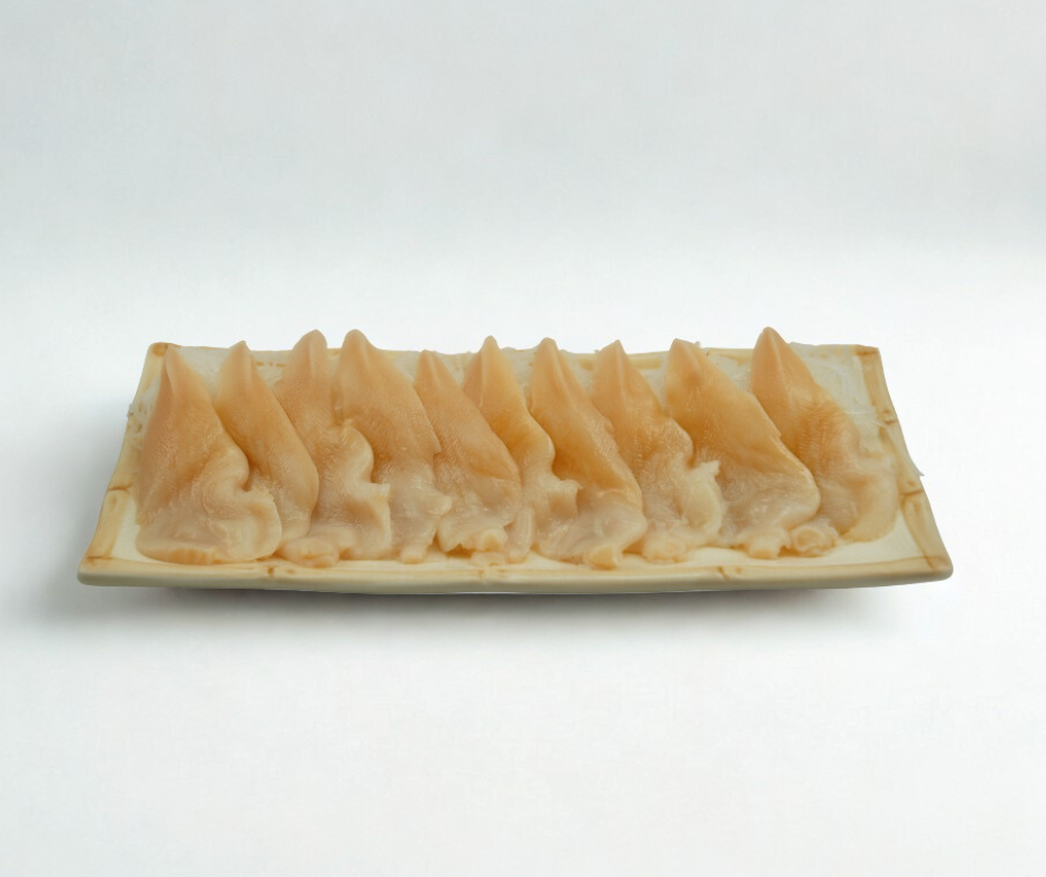 我们的贵妃蚌和您熟悉和喜爱的经典炸蛤蜊条和丰盛的蛤蜊浓汤所用的贵妃蚌是一样的。 它们体型硕大,味道鲜美,用途广泛。你还可以用它们来制作高档寿司和生鱼片,它们的日文名是“青柳”。 这些蛤蜊新鲜捕捞,新鲜直送,品质保证,绝对新鲜。用这道美食,尽情享受海洋的美味吧!